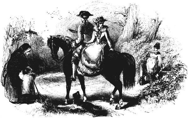 Side-saddles for ladies were an invention of comparatively recent date. The first seen in England was made for Anne of Bohemia, Richard the Second’s queen. It was, probably, more like a pillion than the side-saddle of our day; and if any of our young readers do not know what is meant by the word “pillion,” their grandmammas may, perhaps, be able to describe the thing to them from recollection, for it was in high fashion not a great many years ago. It was a sort of very low-backed arm-chair, which was fastened on the horse’s croup, behind the saddle, on which a man rode who had all the care of managing the horse, while the lady sat at her ease, supporting herself by grasping a belt which he wore, or by passing her arm round his body—if the gentleman was not too ticklish.