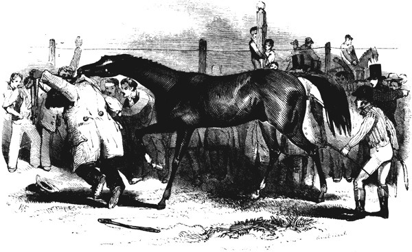 The first heat was easily won, when O’Kelly, observing that the rider had been pulling at Eclipse during the whole of the race, offered a wager that he would place the horses in the next heat (that is, that he would name the order in which they would be when the foremost reached the winning post). This seemed a thing so highly improbable that he immediately had bets to a large amount. Being called on to declare, he replied—“Eclipse first, and the rest nowhere!” The event justified his prediction; for all the others were distanced by Eclipse with the greatest ease (that is, he was at the winning post before they had reached another 240 yards behind it, called the distancing post), and thus, in the language of the turf, they had no place.