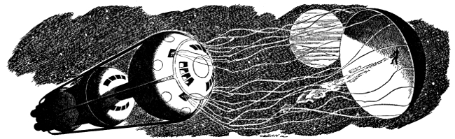 A spacesuited figure was emerging from the airlock, which was in a narrow waist between the vessel's personnel sphere and the huge cargo cylinder beneath it. From the suit, it was either Carrel or Migl.