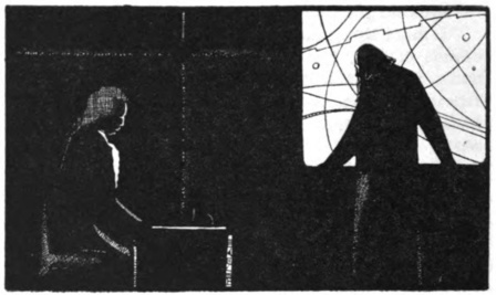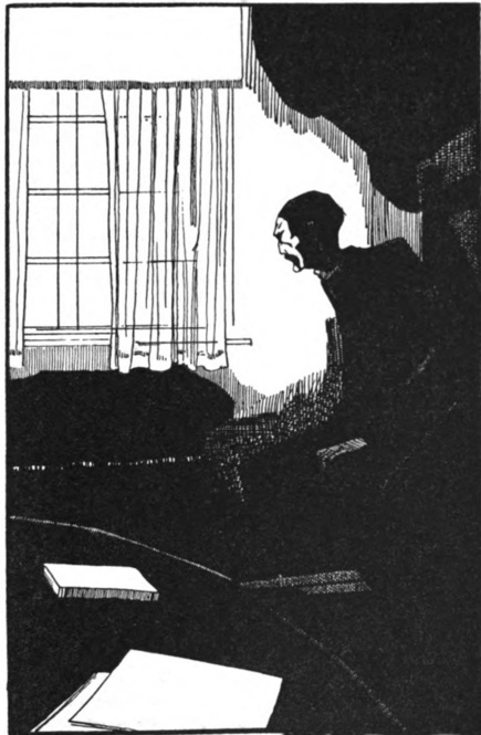 And Mr. Spalding found himself in a white-washed room, scantily furnished with three rows of bookshelves, a writing-table, a table set with mysterious instruments, and two chairs. A shaded lamp on the writing-table gave light. Mr. Spalding had left the umbrella pine country blazing with sunlight, but it seemed that Kant’s time was somewhere about ten o’clock at night. The large window was bared to a dark-blue sky of stars.