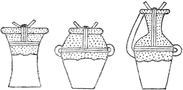 | 5-7. | Jars showing method of securing contents. (From paintings in the tombs at Beni Hasan) | 16 |