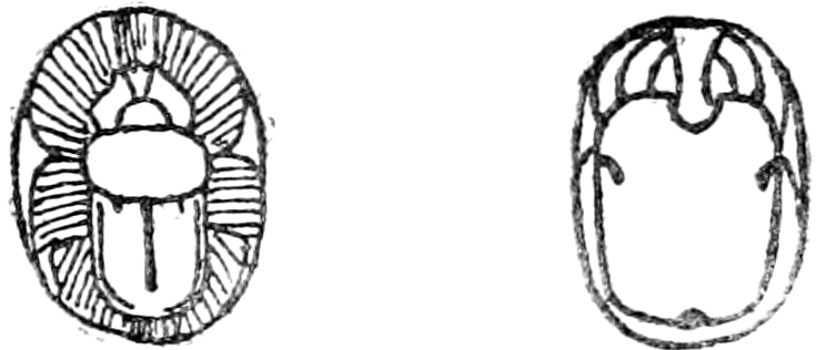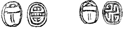 A long residence, extending over several years, at Thebes, the centre of the Upper Egyptian Scarab market, and the place where the best imitation Scarabs are now manufactured, has, I may claim, given me exceptional opportunities for studying this class of Ancient Egyptian antiquities and its allied forms. For some years it was my custom to pay a weekly visit to the Luxor antiquity shops, with the object of examining these and other articles in the dealers’ hands; and, latterly, scarcely a week has passed during my winter’s sojourn on the banks of the Nile but that someone, Egyptologist, collector, tourist, or dealer, has consulted me as to the genuineness, vireading, etc., of Scarabs that they have either purchased or intended to buy. The frequency of these appeals, and the ignorance so generally displayed by the traveller in speaking of Egyptian Scarabs, convinced me that I could at least advance a step or two on what had been previously written on the subject; so, after classifying my notes and visiting and studying the principal collections of England and the Continent, I have prepared the following Introduction to the Study of Egyptian Seals, which will, I venture to hope, be useful to Students and Collectors.