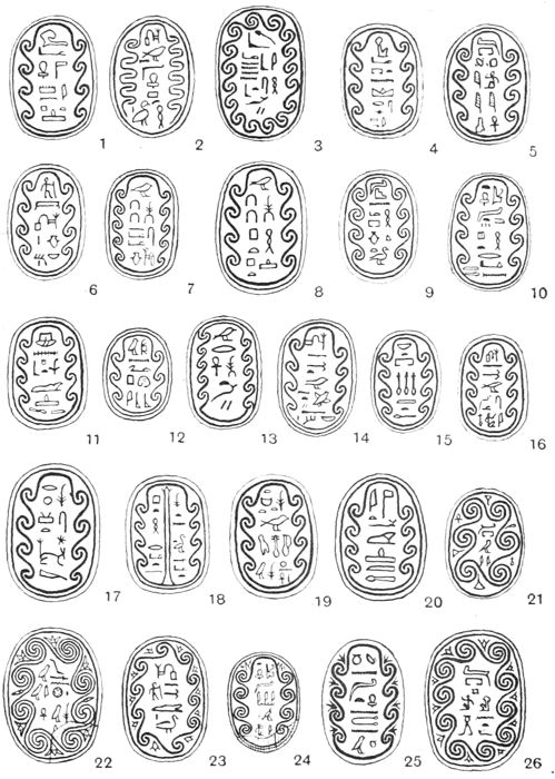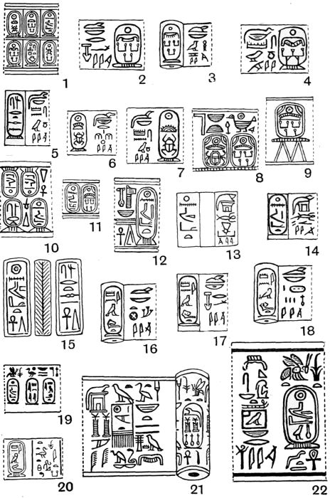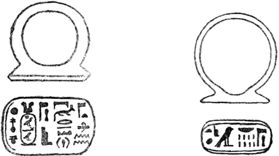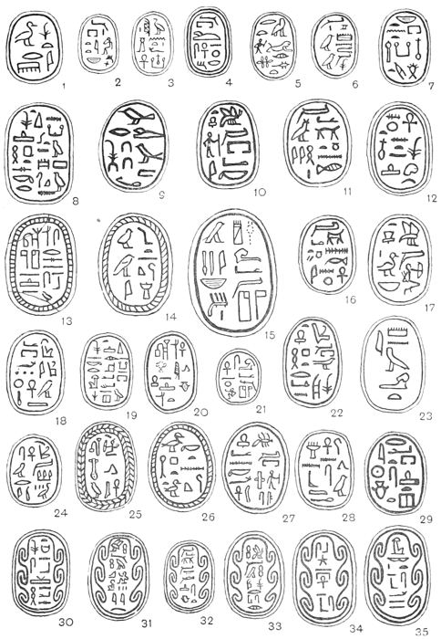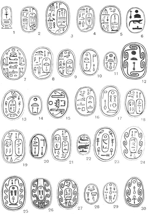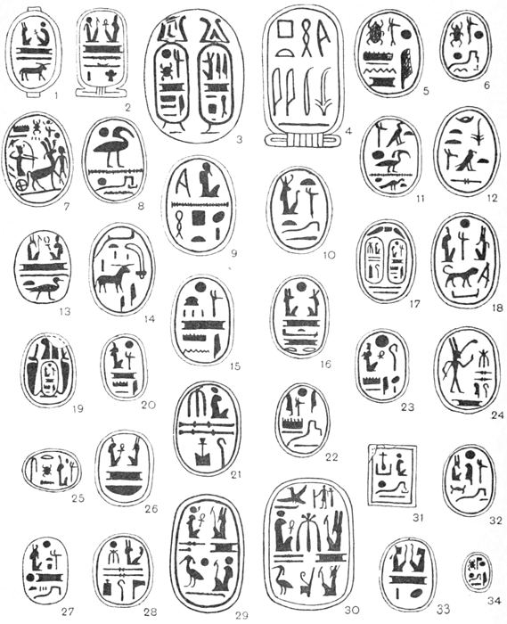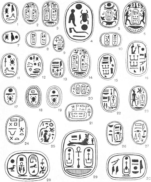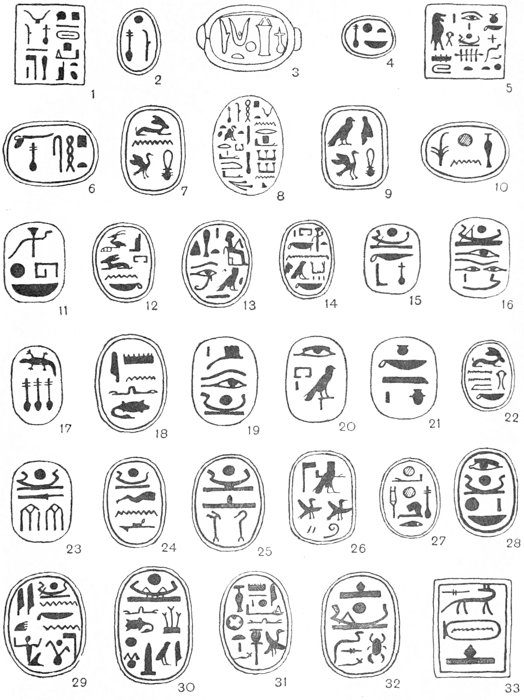That I have spared no pains in order to make this book as complete as possible will, I think, be obvious to anyone who will take the trouble to read the letterpress and examine the plates. About one thousand three hundred specimens of Egyptian Seals and Signet-rings are figured, but these have been selected from drawings of some seven thousand, and from an examination of over thirty thousand examples. It may be noticed that the splendid collection preserved in the National Museum at Cairo has been drawn from but sparingly: this is due to the fact that M. Maspero had already commissioned me to prepare and publish a separate catalogue of the unique collection which is in that great savant’s care. The manuscript of this catalogue is now finished, and it will be published early in the coming year.