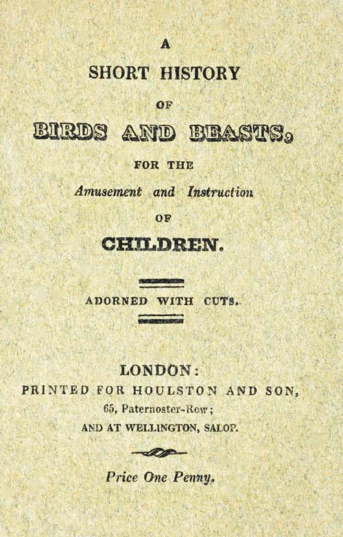 The Project Gutenberg EBook of A Short History of Birds & Beasts, for the Amusement and Instruction of Children, by Anonymous This eBook is for the use of anyone anywhere in the United States and most other parts of the world at no cost and with almost no restrictions whatsoever. You may copy it, give it away or re-use it under the terms of the Project Gutenberg License included with this eBook or online at www.gutenberg.org. If you are not located in the United States, you'll have to check the laws of the country where you are located before using this ebook. Title: A Short History of Birds & Beasts, for the Amusement and Instruction of Children Author: Anonymous Release Date: April 12, 2019 [EBook #59261] Language: English Character set encoding: ASCII *** START OF THIS PROJECT GUTENBERG EBOOK A SHORT HISTORY OF BIRDS & BEASTS *** Produced by hekula03, David E. Brown, and the Online Distributed Proofreading Team at http://www.pgdp.net (This book was produced from images made available by the HathiTrust Digital Library.)
