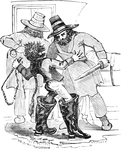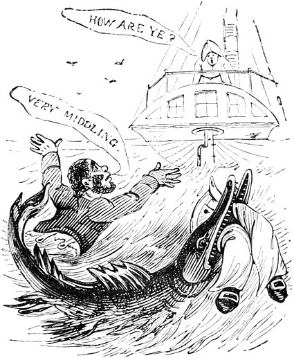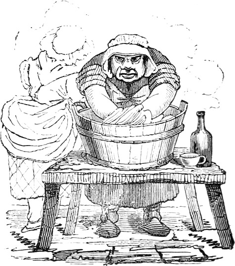 Gentle reader, how do you like this Laughing Philosophy? The joyous cheers you have just heard, come from a crazy vessel that has clawed, by miracle, off a lee-shore, and I, the skipper, am sitting down to my grog, and recounting to you the tale of the past danger, with the manœuvres that were used to escape the perilous Point. Or rather, consider me as the Director of a Life Assurance, pointing out to you a most beneficial policy, whereby you may eke out your natural term. And, firstly, take precious care of your precious health,—but how, as the housewives say, to make it keep? Why, then, don’t care and smoke-dry it—or pickle it in everlasting acids—like the Germans. Don’t bury it in a potato-pit, like the Irish. Don’t preserve it in spirits, like the Barbadians. Don’t salt it down, like the Newfoundlanders. Don’t pack it in ice, like Captain Back. Don’t parboil it[Pg xiii] in Hot Baths. Don’t bottle it, like gooseberries. Don’t pot it—and don’t hang it. A rope is a bad Cordon Sanitaire. Above all, don’t despond about it. Let not anxiety “have thee on the hyp.” Consider your health as your best friend, and think as well of it, in spite of all its foibles, as you can. For instance, never dream, though you may have a “clever hack,” of galloping consumption, or indulge in the Meltonian belief, that you are going the pace. Never fancy every time you cough, that you are going to coughy-pot. Hold up, as the shooter says, over the heaviest ground. Despondency in a nice case is the over-weight that may make you kick the beam and the bucket both at once. In short, as with other cases, never meet trouble half-way, but let him have the whole walk for his pains; though it should be a Scotch mile and a bittock. I have even known him to give up his visit in sight of the house. Besides, the best fence against care is a ha! ha!—wherefore take care to have one all round you wherever you can. Let your “lungs crow like Chanticleer,” and as like a GAME cock as possible. It expands the chest, enlarges the heart, quickens the circulation, and “like a trumpet makes the spirit dance.”