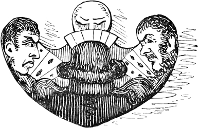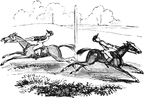 A fico then for the Chesterfieldian canon, that laughter is an ungenteel emotion. Smiles are tolerated by the very pinks of politeness; and a laugh is but the full-blown flower of which a smile is the bud. It is a sort of vocal music—a glee in which everybody can take a part:—and “he who bath not laughter in his soul, let no such man be trusted.” Indeed, there are two classes of Querists particularly to be shunned; thus when you hear a Cui Bono? be sure to leave the room; but if it be Quid Rides? make a point to quit the house, and forget to take its number. None but your dull dogs would give tongue in such[Pg xiv] a style,—for, as Nimrod says in his “Hunt after Happiness,” “A single burst with Mirth is worth a whole season of full cries with Melancholy.”