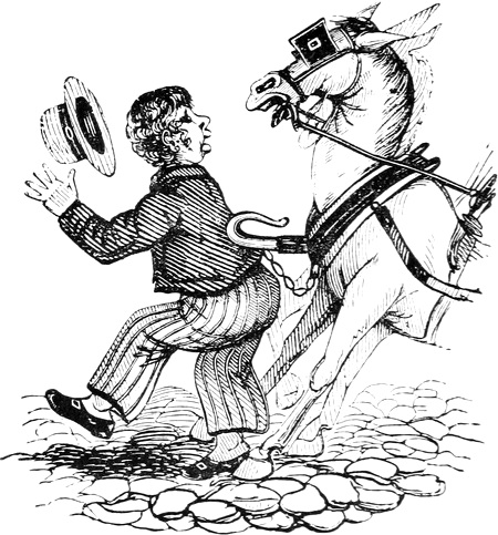 There’s plenty of New Rivers about, and we’re going a fishing as soon as we have mended our top joint. We’ve killed one of our sheep on the sly to get gentles. We’ve a pony, too, to ride upon when we can catch him, but he’s loose in the paddock, and has neither mane nor tail to signify to lay hold of. Isn’t it prime, Bob? You must come. If your Mother won’t give your Father leave to allow you,—run away. Remember, you turn up Goswell Street to go to Lincolnshire, and ask for Middlefen Hall. There’s a pond full of frogs, but we won’t pelt them till you come, but let it be before Sunday, as there’s our own orchard to rob, and the fruit’s to be gathered on Monday.