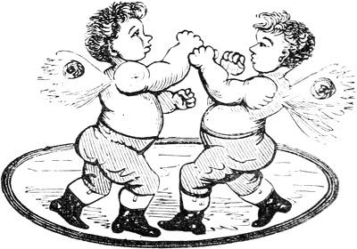Now, my mind seeming to treat the matter very pleasantly as well as profitably, I followed her counsel, and instead of calling out for relief according to the fable, I kept along on my journey, with my bundle of sticks,—i.e. my arms and legs. Between ourselves, it would have been “extremely inconvenient,” as I once heard the opium-eater de[Pg xii]clare, to pay the debt of nature at that particular juncture; nor do I quite know, to be candid, when it would altogether suit me to settle it, so, like other parties in narrow circumstances, I laughed, and gossiped, and played the agreeable with all my might; and as such pleasant behaviour sometimes obtains a respite from a human creditor, who knows but that it may prove successful with the Universal Mortgagee? At all events, here I am, humming “Jack’s Alive!” and my own dear skilful native physician gives me hopes of a longer lease than appeared from the foreign reading of the covenants. He declares indeed, that, anatomically, my heart is lower hung than usual—but what of that? The more need to keep it up! So huzza! my boys! Comas and Momus for ever! No Heraclitus! Nine times nine for Democritus! And here goes my last bottle of Elixir at the heads of the Blue Devils—be they Prussian blue or indigo, powder-blue or ultramarine!