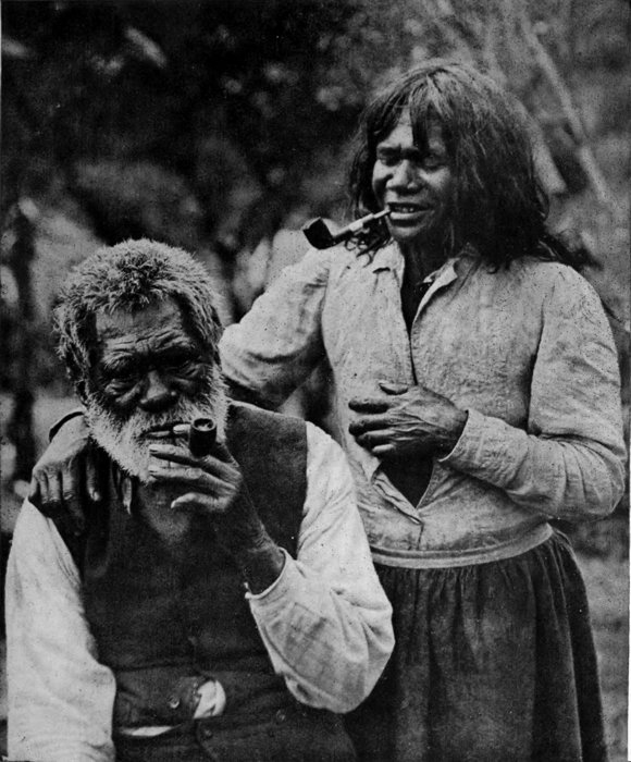At Pawtucket Falls, too, I met a group of travelling Indians, menagerie people I think, en route for somewhere. Fenimore Cooper and other Indian tales still interested me, so I talked to them and spoke to “Bull Face,” a grave-looking chief, tawny and wrinkled with years, and clothed in a heavy brown blanket which swarmed with fleas. He spoke English as well as I did; but the South Sea Island breeds are far removed from the Indian tribes, both by blood and habit. I never sought his tribe again. I also saw Indians camping at Ochee Springs; real Indians they were, with squaws attending to their wants as they blinked their eyes and gazed scornfully on the onlookers. Smoking their calamets, dressed in tribal fashion, they inspired me with curiosity. I cannot say that the women were as handsome as I expected, for they had stolid, broad, reddish-brown faces and expectorated frequently as they sucked clay pipes. A pretty little papoose tugged at its mother’s breast, and did not look unlike a South Sea Island baby, excepting that its forehead was high and receding, and it had an impertinent European look. The women carry their suckling babes in a basket on their back: when the babe finishes pulling at the breast it crawls into the basket behind and goes to sleep until the next meal. I saw the papooses of another tribe too; the children looked like little wrinkled old men, and you might have thought that they were small authors sitting on their bundles of unaccepted manuscript, so worried did they look.