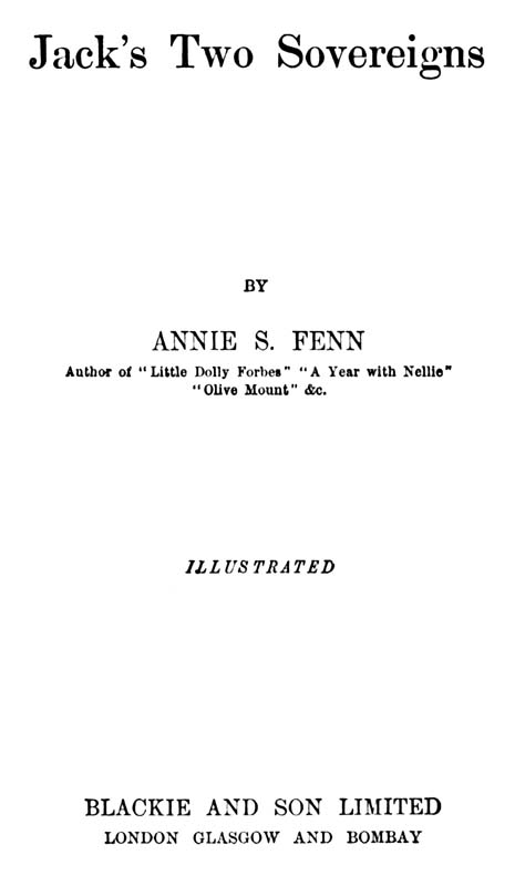 The Project Gutenberg EBook of Jack's Two Sovereigns, by Annie S. Fenn This eBook is for the use of anyone anywhere in the United States and most other parts of the world at no cost and with almost no restrictions whatsoever. You may copy it, give it away or re-use it under the terms of the Project Gutenberg License included with this eBook or online at www.gutenberg.org. If you are not located in the United States, you'll have to check the laws of the country where you are located before using this ebook. Title: Jack's Two Sovereigns Author: Annie S. Fenn Release Date: April 20, 2019 [EBook #59313] Language: English Character set encoding: ISO-8859-1 *** START OF THIS PROJECT GUTENBERG EBOOK JACK'S TWO SOVEREIGNS *** Produced by Tim Lindell, David E. Brown, and the Online Distributed Proofreading Team at http://www.pgdp.net