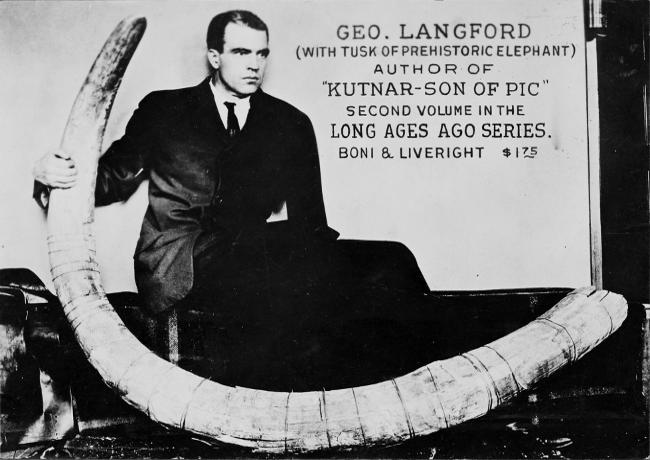 GEO. LANGFORD (WITH TUSK OF PREHISTORIC ELEPHANT)
