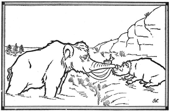 “The stranger lied about the Mammoth Man; a giant mightier than the Hairy Elephant; one who has made the beasts his slaves; his home, a[4] lion’s den; and yet a man who will neither hunt nor fight.”