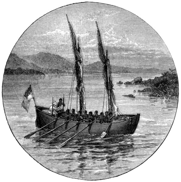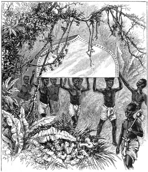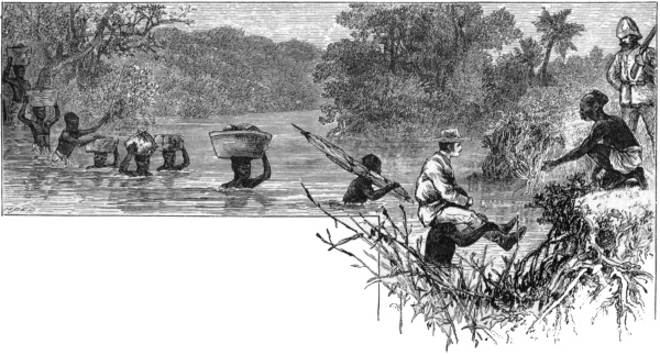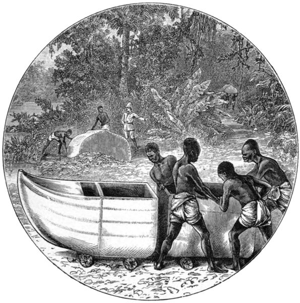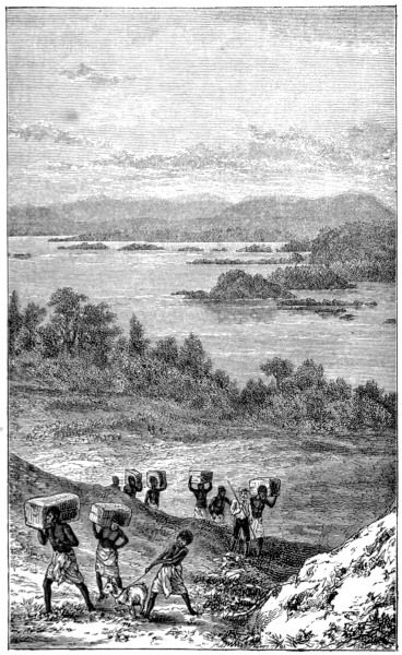 He recalled to their minds the long weary marches, the terrible dank forests of Urega, how easy it would be to sit in canoes, and paddle down this great river, which must flow into the sea. They agreed, and met the first serious impediment to navigation at the Equator, where a series of seven cataracts in forty miles caused them to transport their canoes overland round these obstacles.