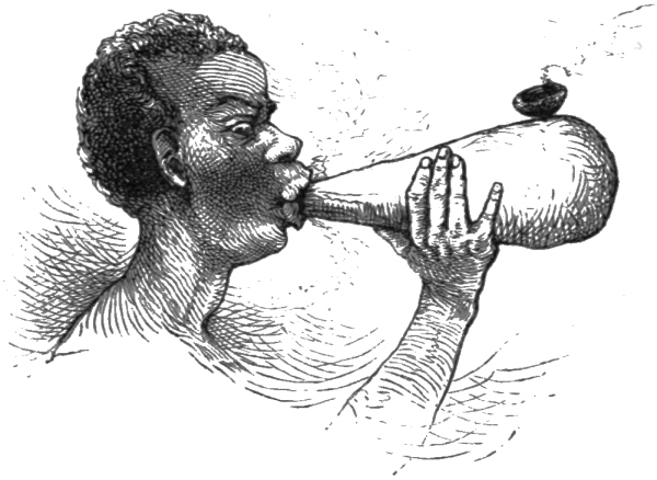 Game is not by any means abundant. Several species of antelope are found, the most common being the harnessed antelope (Tragelaphus scriptus). Elephants are numerous in some parts, but are very seldom hunted. Leopards are found throughout the country. There are two species of buffaloes on the upper river; west of Stanley Pool they are less numerous, and more confined in their distribution. The gorilla is reported three days north of Stanley Pool. The chimpanzee has been heard of, but not seen. Many monkeys inhabit the woods. The jackal is not uncommon; but the lion, which was common until fifty years ago, has disappeared37 over the district between the Kwangu and the mouth of the river. Hippopotami are very numerous; three varieties of crocodile infest the rivers. Fish in great variety are caught by the natives in traps and nets, and by hooks and spearing. Whitebait fishing affords occupation to many men38 in the cataract regions. By day they sit on the rocks waiting for the gleam of a shoal; and when one appears, in an instant they have divested themselves of their scanty clothes, and rush into the strong shallow water with their nets—not unlike a shrimper’s net—each one a little beyond the other, and often are well rewarded for their trouble. Their take is then dried in the sun and sold in the market.