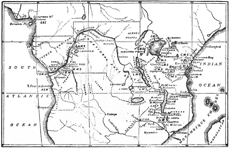 Although only four years have elapsed since my colleague penned the accompanying chapters, yet events have followed each other so fast that another short chapter seems to be needed to bring them up to date. During this brief interval, our knowledge of the geography of the country and the distribution of its waterways has been considerably extended; important political events have transpired on both the eastern and western boundaries of the Congo Free State; commerce has seriously undertaken the task of exploiting the resources of the interior; and missions also have been moving onward, and at the same time have succeeded in strengthening their old positions.