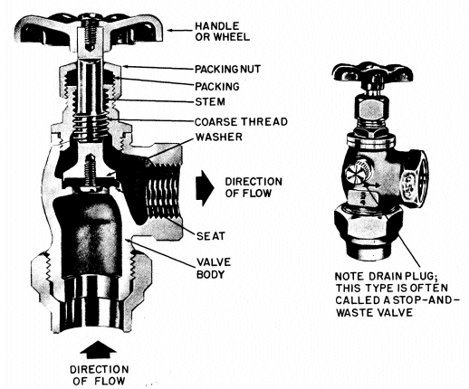 Faucets and globe valves, the type of shutoff valves commonly used in home water systems, are very similar in construction (fig. 1) and repair instructions given below apply to both. Your faucets or valves may differ somewhat in general design from the one shown in figure 1, because both faucets and valves come in a wide variety of styles.