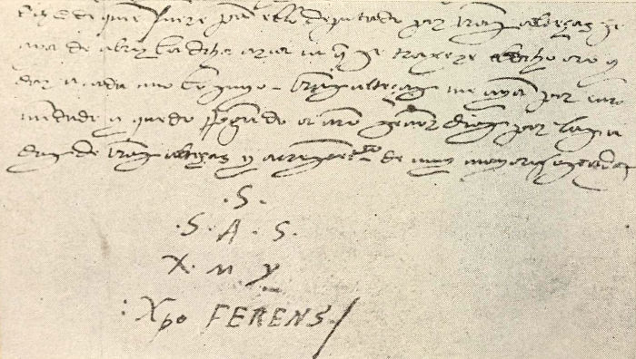 Reille (Columbus und seine vier Reisen, [9] 1892) con altrettanta verosimiglianza spiega la sigla: "Servidor de sus altezas sacras Iesus Maria Joseph, — Portatore di Cristo".