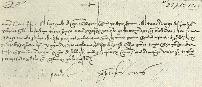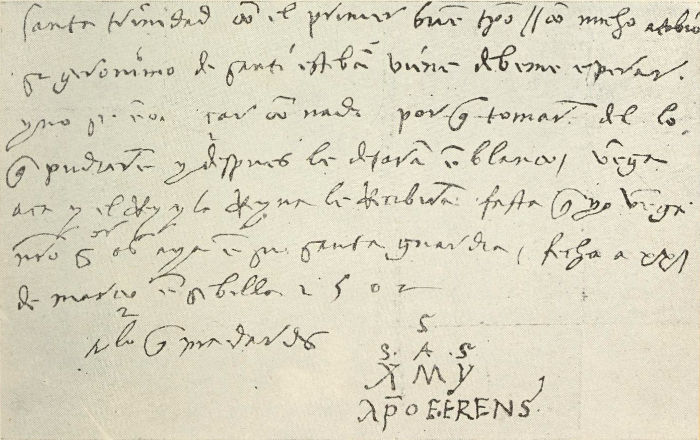 Quella sigla è così strana, che invano, vi si sbizzarrirono attorno i biografi e i paleografi; eppur si ripete sempre con tale identità di particolari, che la mancanza d'uno di quelli che si ritrovano, sempre, negli originali come nel n. 3 che noi anche (v. s.) per altre ragioni grafologiche crediamo sospetto, è stata dai competenti ritenuta indizio sufficiente per sospettare trattarsi di falsificazioni come in tanti altri pretesi autografi colombiani, pullulati da ogni parte, specialmente in occasione del IV centenario della scoperta dell'America.