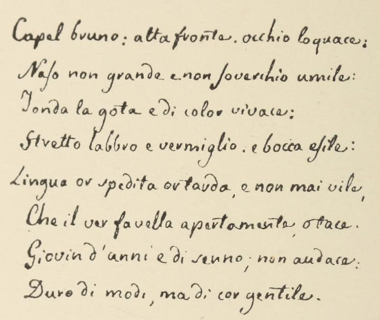 Nel ritratto di Giovio (Raccolta di documenti Colombiani, III. vol. I), poi che si vuole il più autentico, troviamo: "Mandibola grande, assenza di barba, fronte sfuggente".