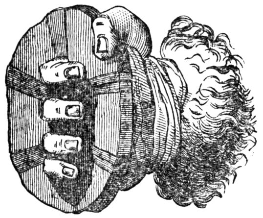 “Michael-Angelo (Buonarotti’s) nose was flat from a blow which he received in his youth from Torrigiano,[1] a brother artist and countryman, who gave me the following account of the occurrence: ‘I was,’ said Torrigiano, ‘extremely irritated, and, doubling my fist, gave him such a violent blow on the nose that I felt the cartilages yield as if they had been made of paste, and the mark I then gave him he will carry to the grave.’” Cellini adds: “Torrigiano was a handsome man, of consummate audacity, having rather the air of a bravo than a sculptor: above all, his strange gestures,” [were they boxing attitudes?] “his enormous voice, with a manner of knitting his brows, enough to frighten any man who faced him, gave him a tremendous aspect, and he was continually talking of his great feats among ‘those bears of Englishmen,’ whose country he had lately quitted.”