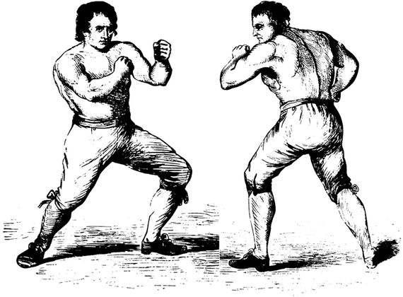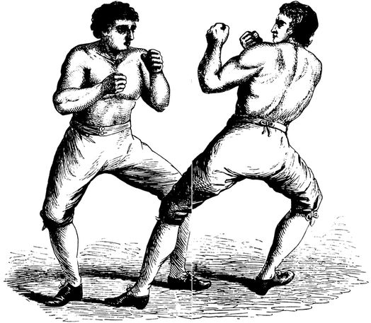 “Fighting, of course, is wrong; but there are occasions when.... I mean that one-handed fight of Sayers is one of the most spirit-stirring little stories; and with every love and respect for Morality, my spirit says to her, ‘Do, for goodness’ sake, my dear madam, keep your true, and pure, and womanly, and gentle remarks for another day. Have the great kindness to stand a leetle aside, and just let us see one or two more rounds between the men. That little man with the one hand powerless on his breast facing yonder giant for hours, and felling him, too, every now and then! It is the little Java and the Constitution over again.’”—W. M. Thackeray.