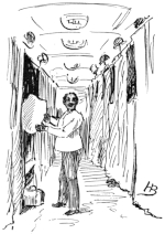 So, in single file (“like cannibals on the trail of a missionary,” Harry said), they passed from car to car. The cars were connected by vestibules—collapsible 7 passageways, folding like an accordion—and it was not necessary to go outside at all. The train was an unbroken hallway.