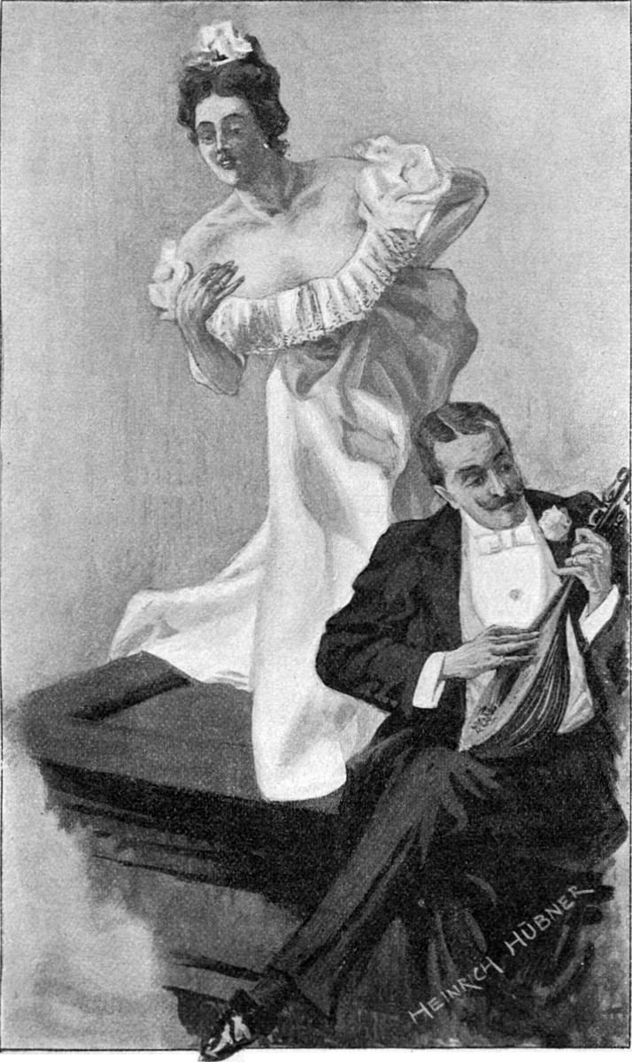In den mit anspruchsloser Vornehmheit eingerichteten Räumen befanden sich eine Unmenge Herren im Frack und weißer Binde; tiefernst lasen sie Zeitungen, kritzelten mit affenartiger Geschwindigkeit ihre Briefe oder saßen um die Tische der Spielzimmer. In den Fluren und an der Treppe streckten sich zahllose Jünglinge auf den dunkeln ledernen Divanen und schwatzten und kicherten mit gedämpfter Stimme.[S. 8] Hier und da trank einer ein Täßchen Kaffee, einen Cognac oder Selterswasser, die Meisten, wie auch wir, nahmen nichts. Zum Rauchen gab es getrennte Zimmer, die übrigen Räume waren musterhaft gelüftet. „Ja,“ meinte Hoyen auf meine Bemerkung, „die Engländer vergöttern die Aristokratie, sind aber keineswegs exclusiv und nehmen leicht einen Gentleman, was auch sein Vater gewesen, in ihre Kreise hinüber. Zum Gentleman aber gehört, daß man eine vornehme Schule besucht hat, Abends zum Mittagessen sich in einen Frack wirft, peinlich die Wahrheit spricht, ohne tägliche Bäder umkommt und stickige, verbrauchte Luft wie den Tod verabscheut. Also ein bißchen Nietzschianerthum.“ Hier trafen wir auch mehrere Hoyen’sche Bekannte, welche ebenfalls gesonnen waren, den Levinsohn’schen Ball mit ihrer Gegenwart zu beehren. Augenscheinlich verkehrt ganz London bei diesem ursprünglich deutsch-semitischen Bankiers, auch die königliche Familie, was der nur für solche Gelegenheiten bestimmte, auf die Straße gelegte scharlachrothe Teppichläufer schon von Weitem bekundet. Doch bekam ich weder den Prinzen von Wales noch die Wirthe zu sehen. Um uns drängte sich eine dicht gekeilte Menge, es stauten sich die tadellos angezogenen jungen Herren und die Damen in ihrer blitzenden Diamantenpracht und den schneeweißen Schultern. Im Stimmengeschwirr hörte man von der auf zwölfhundert Pfund geschätzten Blumendecoration[S. 11] schwärmen, Andere jammerten über die „Ananastreibhaushitze“ und Andere wieder erzählten von den fünf berühmtesten Schönheiten Londons, welche die Festlichkeit krönten. Aber unser erneuter, mannhafter Versuch, die mit verschwenderischer Rosenfülle umkränzte Treppe hinauf zu gelangen, schlug fehl, auch das Eßzimmer war undurchdringlich dicht belagert, und so standen wir nach einer halben Stunde wieder auf der Straße. Einige Häuser weiter gab es ebenfalls vorfahrende Wagen, Treppenläufer und dichte Scharen wartender Diener. Einen derselben frug Hoyen nach dem Namen der gesellschaftgebenden Herrschaft, erinnerte sich dunkel, mit einer der Töchter ’mal getanzt zu haben, vermuthete zu diesem Abend eingeladen zu sein, ging mit mir hinein und dann aus der Garderobe schnurstracks in das Eßzimmer. Dort traf er mehrere Bekannte, zu denen wir uns an einen der kleinen Tische setzten und höchst gemüthlich abendbroteten. Darauf machte sich Hoyen noch etwas liebenswürdig und geleitete alte Damen an ihre Wagen; schließlich holten wir unsere Sachen und verließen, ohne unsere Gastgeber auch nur erblickt zu haben, das Haus. Als aber mein Willy hierauf noch einen Stoß Einladungskarten herausholte und mir kaltblütig noch weitere Gesellschaften vorschlug, krümmte sich denn doch selbst der Wurm, und störrisch verlangte ich nach Hause zu gehen.