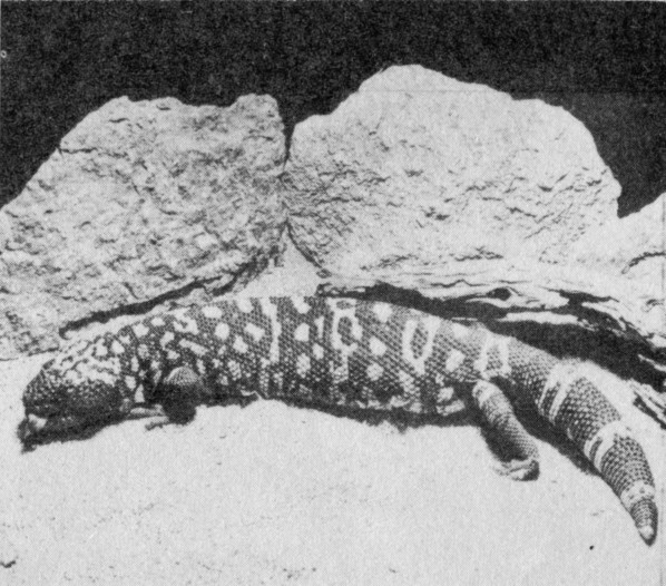 Gila (Hee-lah) Monster—The only poisonous lizard in the United States; it is protected in Arizona by law. Its skin is beaded and its color is marbled black with pinkish or yellowish. The Gila Monster reproduces by eggs which are laid in the sand.