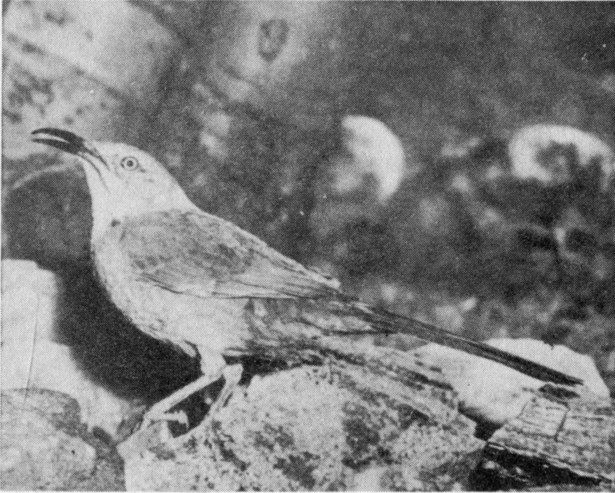 Palmer Thrasher—Robin-sized, with curved bill, long tail and gray-brown back. Often nests in the Cholla Cactus.