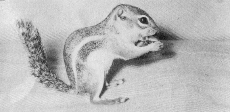 Above—Harris Ground Squirrel—A small ground squirrel with striped back and a bushy tail usually held erect. They are active during the day and may be seen from April through November.