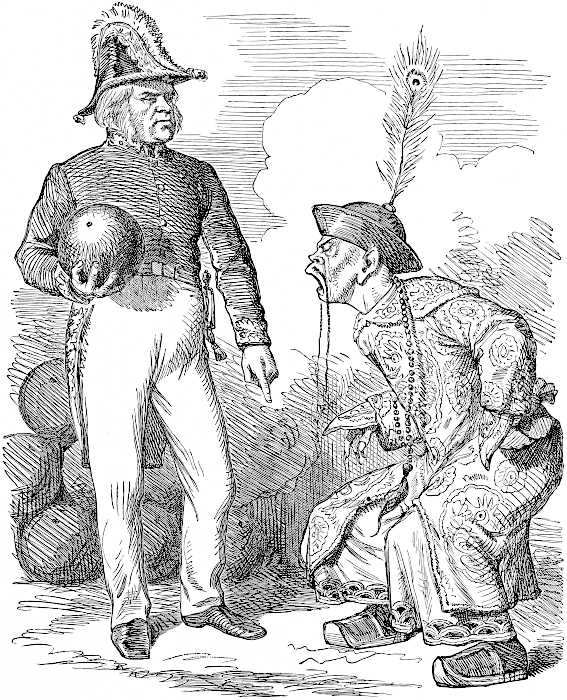 | Lord Elgin, having with the English and French forces occupied Pekin, compelled the Chinese Emperor to pay the indemnity for the last war. | |