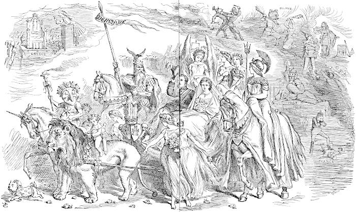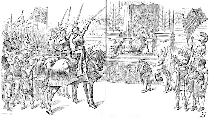 THE present collection of Sir John Tenniel’s Cartoons is intended to be a selection comprising the more memorable of those which have appeared in “Punch” during the last 50 years. The first in the collection bears the date of 1851, and the last is Sir John Tenniel’s final Cartoon in January, 1901. Short explanatory notes have been provided, but as most of them will, perhaps, be unnecessary to those to whom the Cartoons themselves are familiar, they have been grouped together and combined with the Table of Contents at the commencement of the volume, where they can readily be referred to.