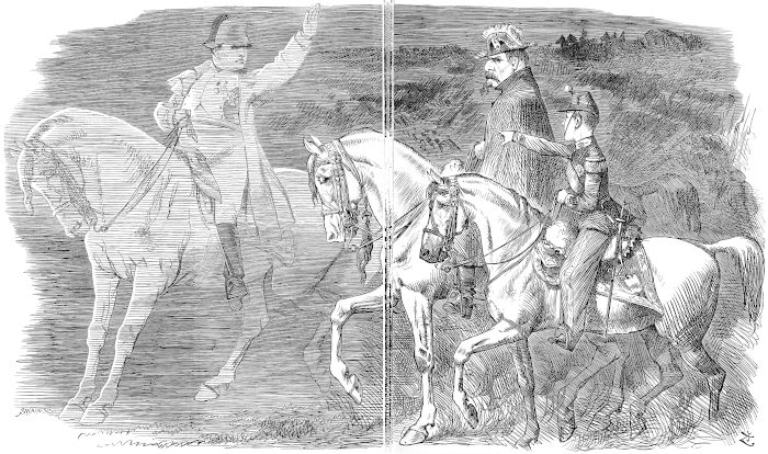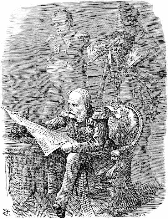 | France had declared war against Germany, and the Emperor Napoleon and his son had left Paris to take command. The shade of the Great Napoleon forebodes the disasters which followed. | |