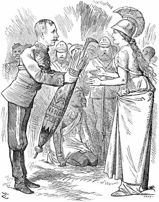 | Sir Garnet Wolseley’s march to Coomassie involved much loss of life, with little more result than the possession of the Umbrella, the symbol of Ashanti sovereignty. | |