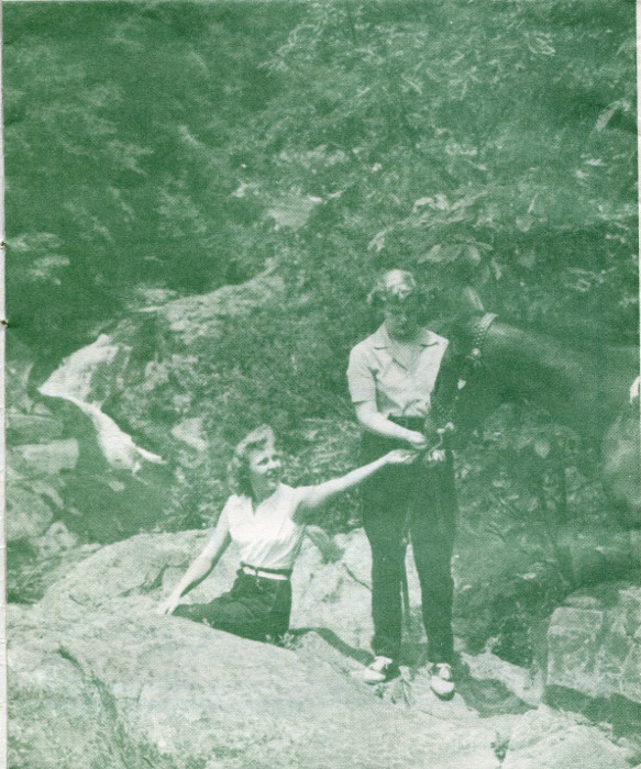 Don’t leave this area until you hike the 1½-mile round trip to Stony Man Mountain. You saw the rock profile in view for many miles if you approached Skyland from the north. From this cliff of weathered, greenstone rock, the view is sheerly downward to the valley, and sweepingly across to the Massanutten Mountain, a hazy blue in the distance. The half-day hikes to Whiteoak Canyon, and to the summit of Marys Rock (trail starts at Panorama), as well as shorter walks to Millers Head, Little Stony Man Cliffs, and Hawksbill Mountain, are most easily reached from Skyland.