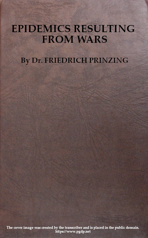 The writer has drawn as much as possible from original sources; this applies at least to the pestilences of the Napoleonic Period, and to the epidemic of small-pox after the Franco-German War. It would have been impossible to deal with the other wars in the same way without consuming considerable time. From the bibliographies it will appear what sources the author has consulted; rarely are quotations given from works which he has not seen, and in such cases it is indicated whence they were taken.
