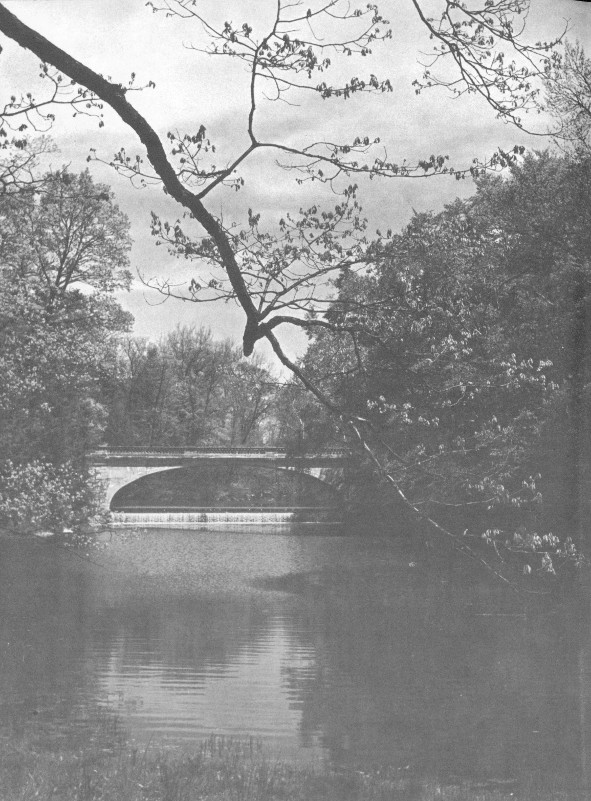 An old frame bridge crossing Crum Elbow Creek to the Post Road was replaced with the present White Bridge, for its time a very modern steel and concrete arch structure. A stable-coach house was built downstream. It was reached by a newly constructed rustic fieldstone bridge across the creek.