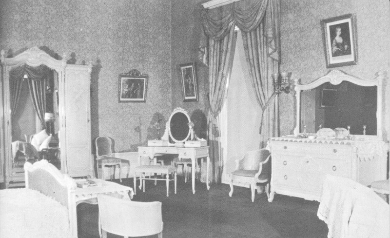 While Mrs. Vanderbilt resided there, the pavilion wore an aspect of “quiet domesticity.” One story told of her small rooms on the second floor “... brightened by a variety of exquisite feminine trifles.” Among these was a novel arrangement of rich portieres or doorway curtains that gracefully concealed the door.
