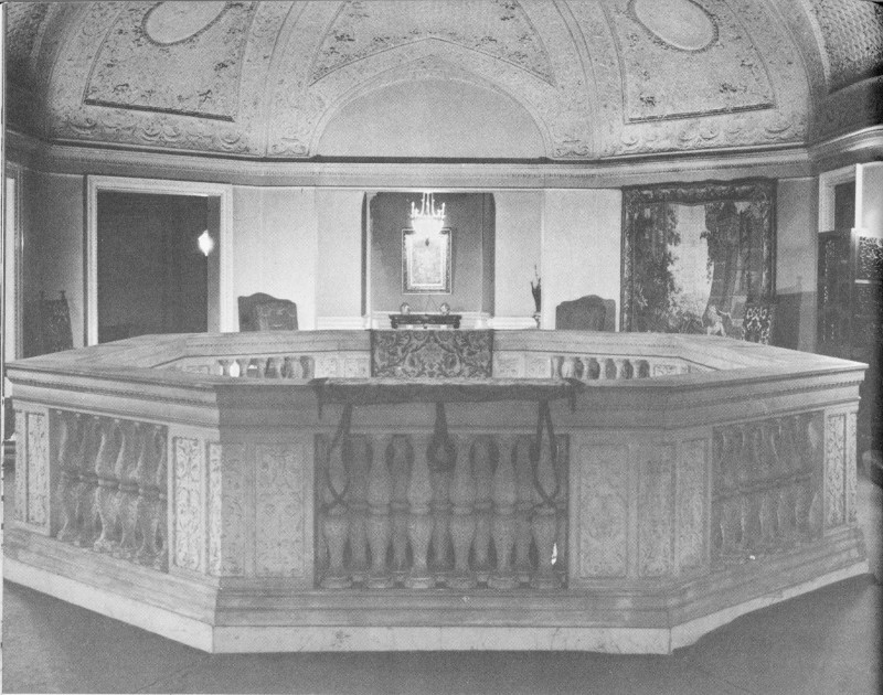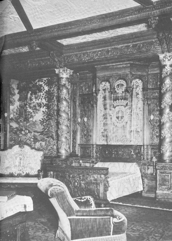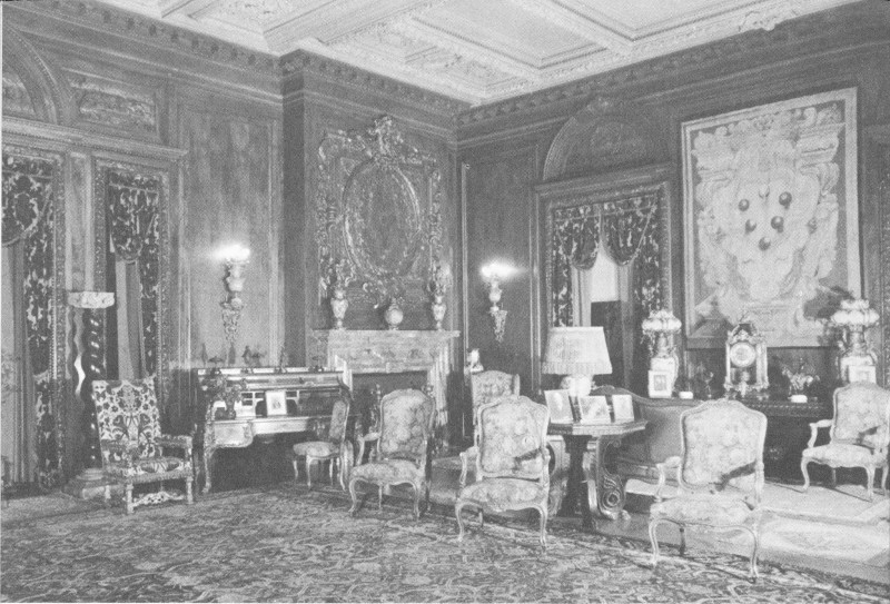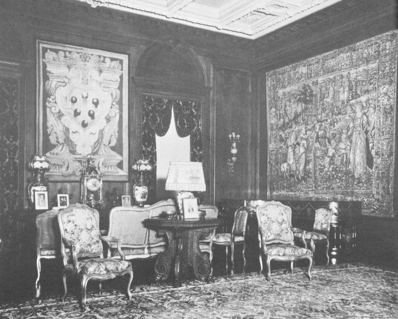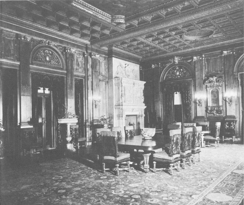 The curious public was barred from the estate during these operations for fear of damage to the exquisite and costly decorations. But speculation concerning the interior of the mansion could not be stopped. One reporter, commenting on the number of skilled workmen and artists who daily tramped into the building, surmised that “... the inside will be as rich and beautiful as the outside is massive and splendid.” Another writer seemed gripped with nostalgia for a simpler day when he wrote: “The modest dwellings which satisfied wealthy landowners along the Hudson half a century ago ... are disappearing. On their sites are rising baronial halls fit for royalty....”