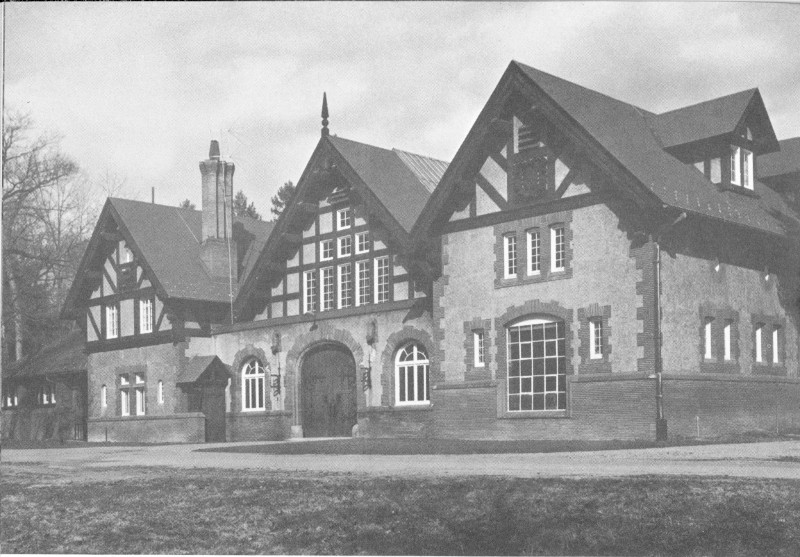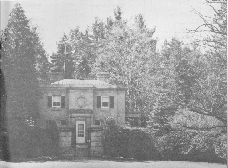 A carriage house of native field stone, probably erected in the late 1820’s, stood 540 feet north of the old mansion. Investigation revealed that the lime in the foundations and walls of this building had deteriorated to a point where the structure was unsafe, and it was decided to remove it completely. Plans were drawn for a pavilion to be erected on the same site. This would accommodate the Vanderbilts until the mansion was completed.