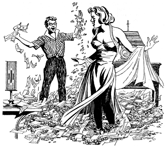 Glory had been taught to respect the might of the dollar and the disaster that comes of not spending it. She was a credit to her family; a sound, patriotic consumer. She could spend money faster, more sensibly than any of her frivolous friends. One fortunate young man would find her an excellent wife. No dollar-hoarder would fill her mind with subversive notions if he could prevent it.