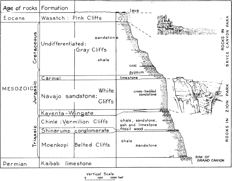 Generalized section of sediments in Zion and Bryce Canyons.