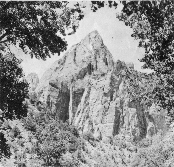 (Union Pacific Railroad photo) Angels Landing, rising approximately 1,500 feet above the canyon floor.