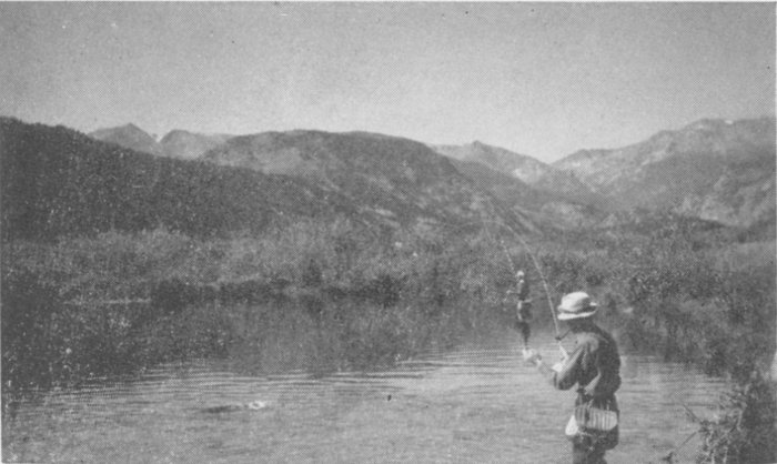 At the Eastern entrance to this National playground is the modern town of Estes Park, with an elevation of 7,549 feet. Estes Park has daily mail service, direct telegraph and long distance telephone connections, and most efficient electric and phone service. Its water, only a few hours from the eternal snow fields, is 99 per cent pure by test, and fresh pure milk from inspected herds is delivered daily.