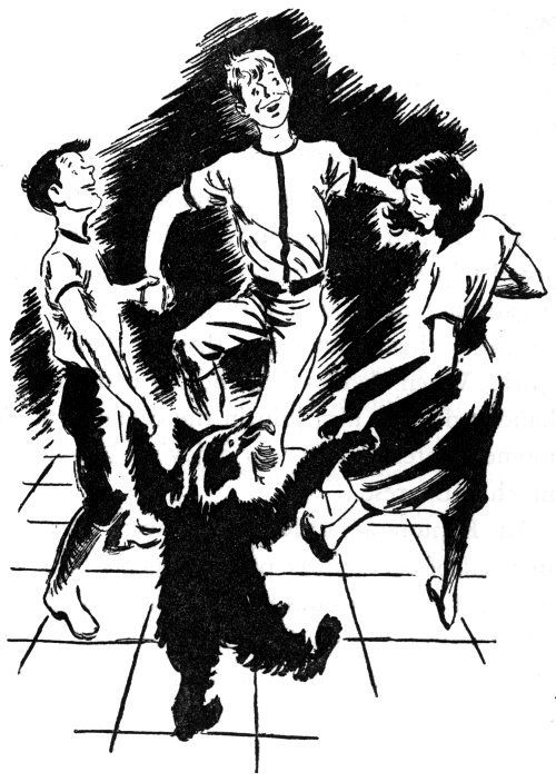 Jill tried other movements, whirling and doing flip-overs. Then she grew bolder, moving more swiftly. She teased Ted into trying to catch her, and he finally got into the game. He lunged at her but missed her fleet form every time. The game grew more active. Presently both of them were scampering about in the space-ship compartment, laughing and having great fun.