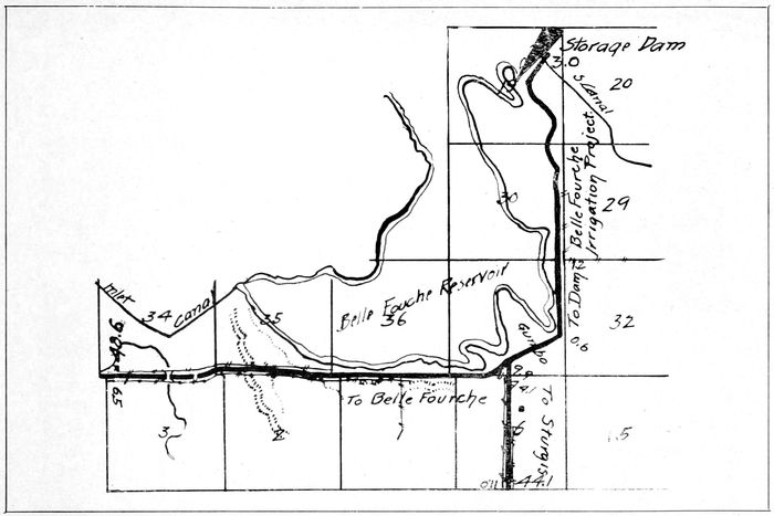The Homestake Pumping Plant at Hanna, 6 miles from Lead, and the Hydro-electric plant at Spearfish, 15 miles from Lead, furnish the water and power used in the Homestake properties. The Hydro-electric Plant is the largest of its kind in the Hills. The water is carried in a tunnel 5 miles long from the river in Spearfish Canyon, at a point 8 miles from Spearfish, to the reservoir on top of the ridge overlooking and directly south of the city. The three surge towers, on the pipe lines leading from the reservoir down the 700 foot drop to the power plant, may be seen for many miles.