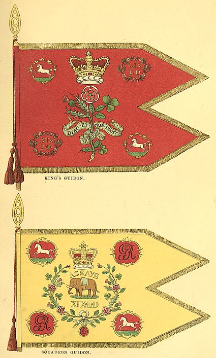 The fourth regiment, the one that now bears the title of the Nineteenth Princess of Wales’ Own Hussars, was originally raised by the East India Company on the outbreak of the Mutiny of the Bengal Army, and received its present number on the transfer of its services to the Crown. In 1882, they formed part of the expedition to Egypt under Lord Wolseley, to put down the rebellion of Arabi Pasha. In 1884, they formed part of the expedition to Suakin under Sir Gerald Graham, and fought at El-Teb and Tamai, suffering severe losses in the first of the two actions. In 1885, they were selected by Lord Wolseley to form part of the expedition to Khartoum; the only horsemen that accompanied the force. The Head Quarters of the regiment formed part of the Desert Column, under Sir Herbert Stewart, and fought at Abu Klea and Abu Krou, while a squadron of the regiment accompanied the River Column, under General Earle, and were present at the action at Kirbekan. A third portion of the regiment was at the same time employed at Suakin, where it experienced serious losses. For its services in 1885 the regiment was granted the distinctive title it now bears; a proof that it is no unworthy successor of the regiment that helped to strengthen the foundations of our power in India, under Cornwallis, Harris and Wellington, and whose[x] honourable badges it wears, in addition to those it has won for itself.