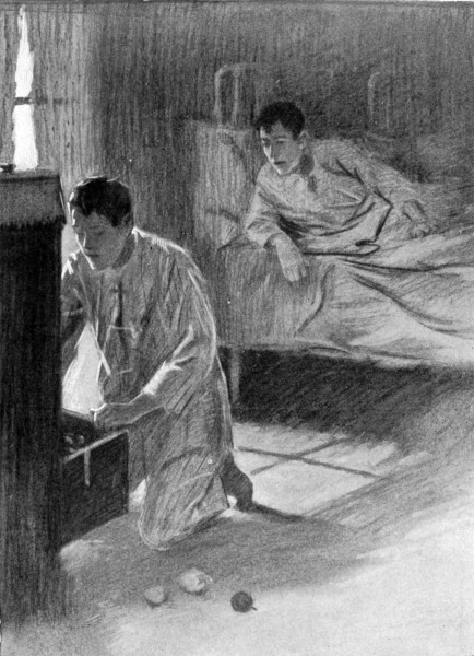 The two boys stared at each other bewilderedly. Then, with an exclamation, Ned leaped from the bed and began fumbling amongst the apples, and a moment later there was a cry of triumph from both and Ned was holding a second folded package of money in his hand. From it a coin fell and rolled across the floor.