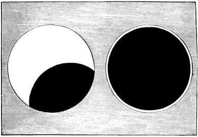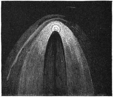 The brightness of the sun is among the most wonderful things in nature, and there are three points that I ask you to remember, and then indeed you will agree with Milton, that the sun is “with surpassing glory crowned.” First think of the beauty and brilliancy of a lovely day in June. Then remember that all this flood of light comes from a single lamp at a most tremendous distance; and thirdly, recollect that the sun is not like a bull’s-eye lantern, concentrating all his light specially for our benefit, but that he diffuses it equally around, and that we do not get on this earth the two-thousand-millionth part of what he gives out so plenteously! When we think of the brightness of day, of the distance from which the light has come, though Nature has not adjusted any vast lenses to direct10 the light specially in our direction, we begin to comprehend the sun’s true magnificence.