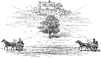 In the middle of the day, when the sun is high in the heavens, it is impossible for us to form a notion of the size of the sun. People will form very different estimates as to his apparent bigness. Some will say he looks as large as a dinner plate, but such statements are meaningless, unless we say where the plate is to be held. If it be near the eye, of course the plate may hide the sun, and, for that matter, everything else also. If the plate were about a hundred feet away, then it would often hide the sun. If the plate were more than a hundred feet distant, then it could not hide the sun entirely, and the further the plate, the smaller it would seem.